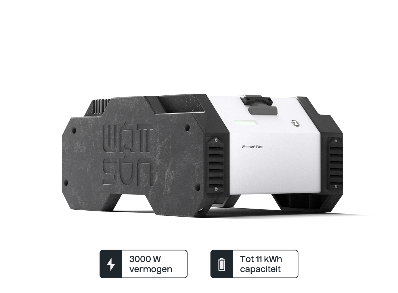 Meer batterijcapaciteit nodig dan de Dock 3000 in voorziet? Stapel een Wattsun Pack op een Wattsun Dock. Het intelligente besturingssysteem regelt de rest. Stapel tot wel 4 Packs op een Dock en creëer een stroomvoorziening van liefst 11 kWh.