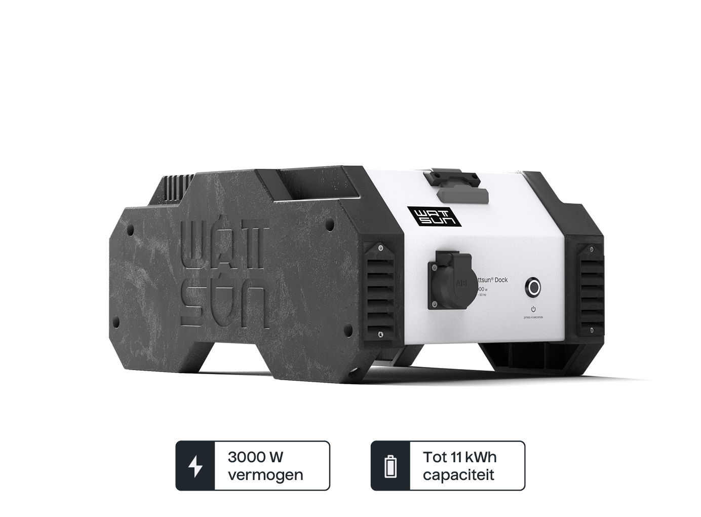 De Dock 3000 werkt zelfstanding als volwaardig batterijsysteem. Batterijcapaciteit uitbreiden? Dat kan met de Wattsun Pack.